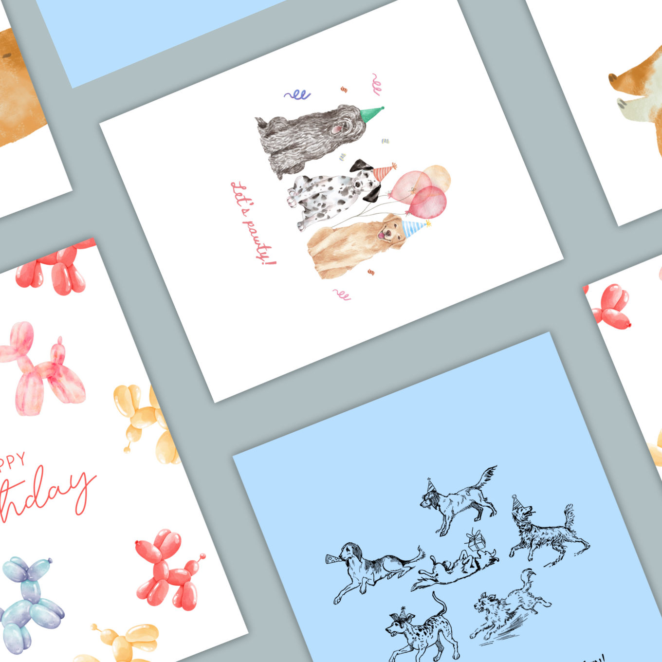 This colorful card features adorable balloon dogs, perfect for any birthday celebration.