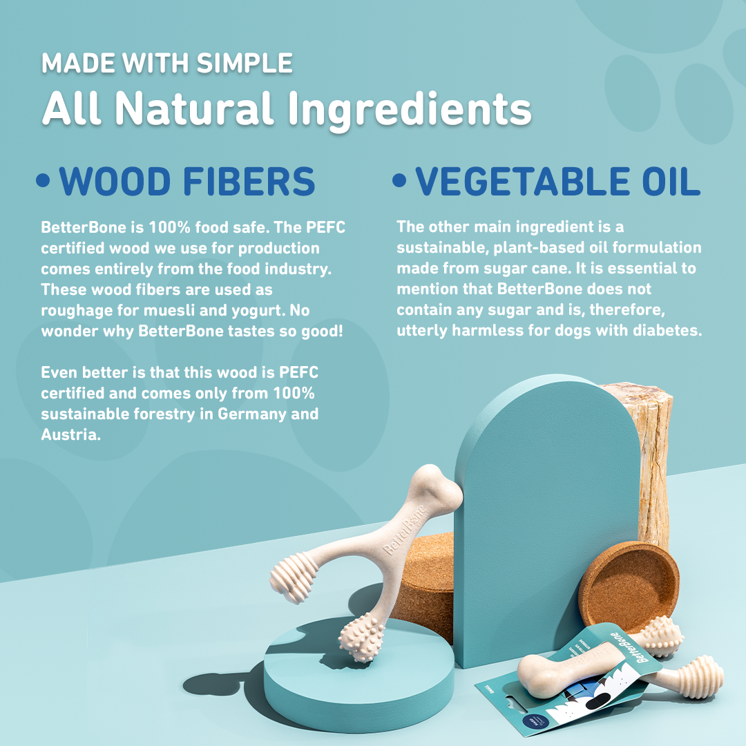 The BetterBone CLASSIC is your dog's new favorite chew! Say no to nylon, and potentially chemical-laden chews! Made from two all-natural food-grade and sustainable ingredients for your dog's and the planet's health. BetterBone Classic is softer than nylon. Perfect for teething puppies, light to medium chewers, and older dogs.