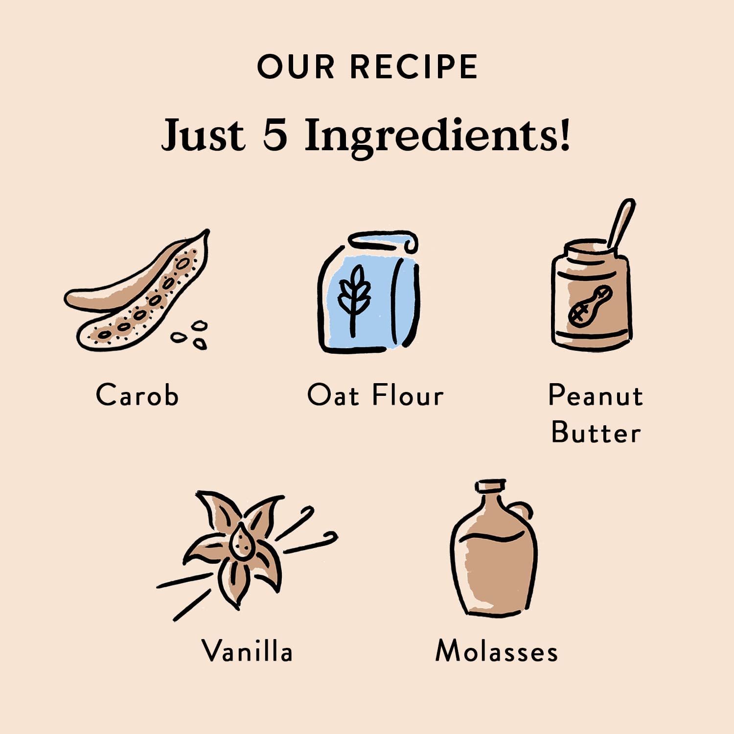 Ingredients: Oat Flour, Peanut Butter, Carob, Vanilla, Molasses Crude