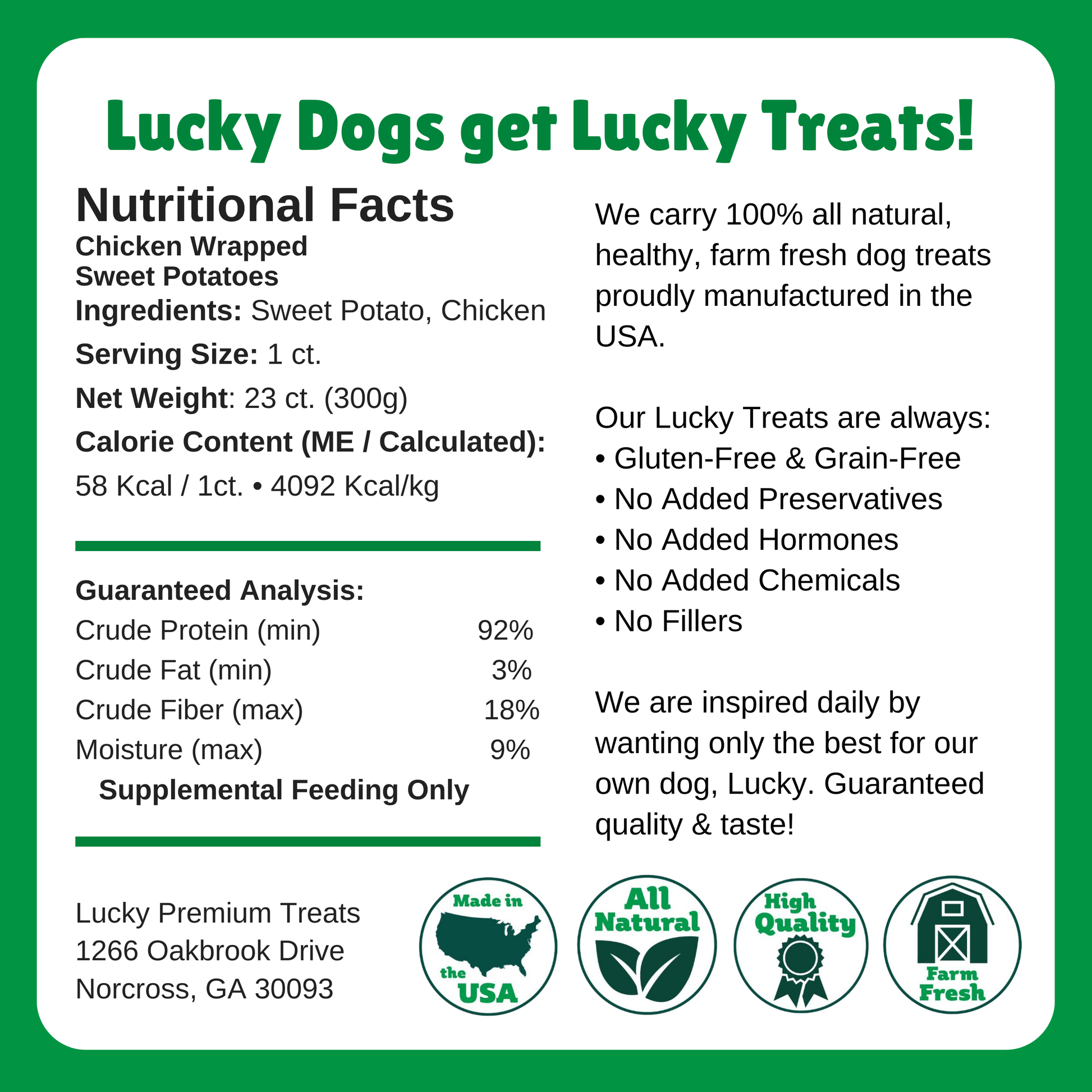 Boost your store’s best-sellers with our Chicken Wrapped Sweet Potato Chews, an all-natural, long-lasting dog treat made in the USA with just two premium ingredients: farm-fresh sweet potatoes and restaurant-grade chicken breast. Each chew is hand-wrapped for maximum flavor and chew time, making them ideal for pet owners seeking healthy, limited-ingredient snacks. Wholesale Dog Treat Features: Only 2 Ingredients: Sweet Potato + Chicken All-natural, grain-free, and gluten-free No preservatives, additives, or artificial fillers Made & sourced in the USA Chew alternative for dogs of all sizes