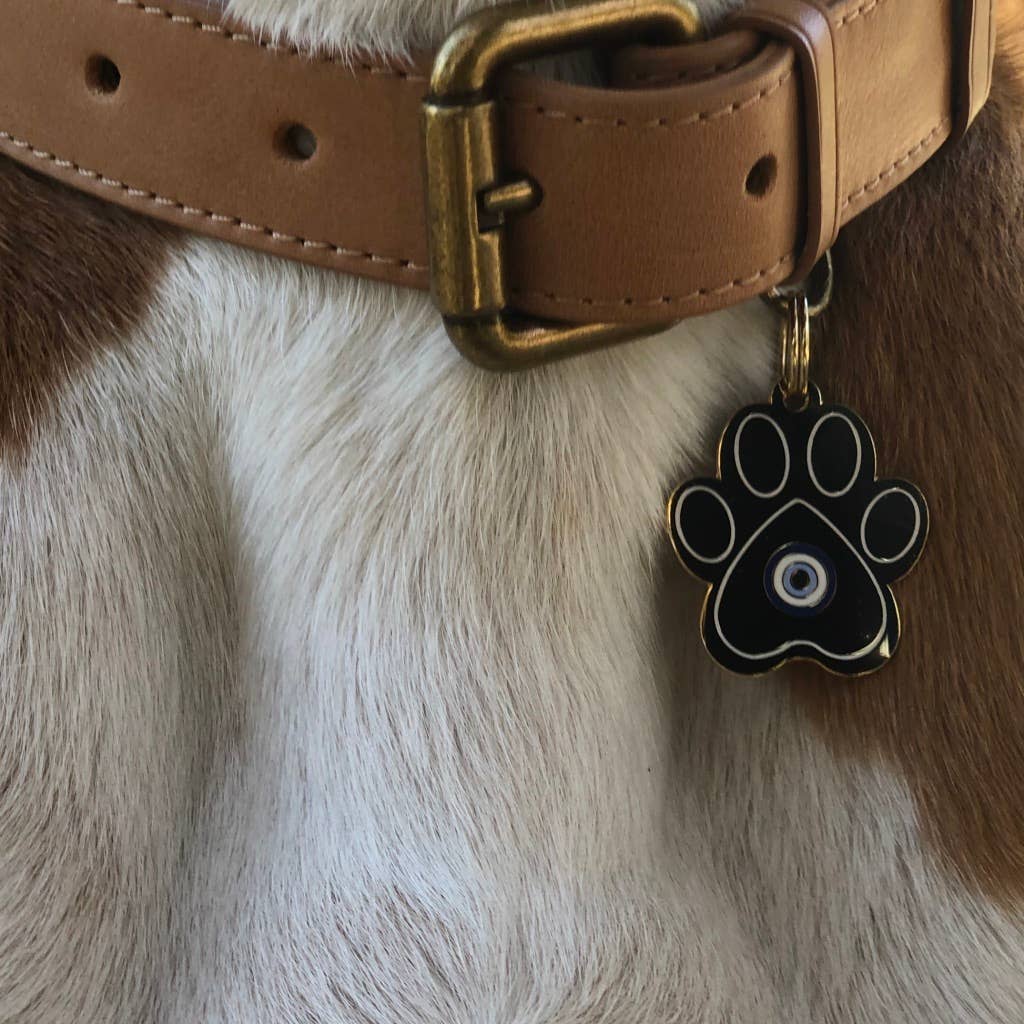 "Wearing the ‘Evil Eye’ Pet ID Tag can guard your dog from all the terrible ills of the world including squirrels, mailmen, and whatever it is he barks at while you’re sleeping. And even if the evil eye only brings you peace of mind, that’s a sure fire way to keep the evil thoughts out! Those can be the trickiest ones to get rid of. Shield your pup from wicked with this ‘Evil Eye’ pet ID tag. Add your dog's name for a pet ID tag!