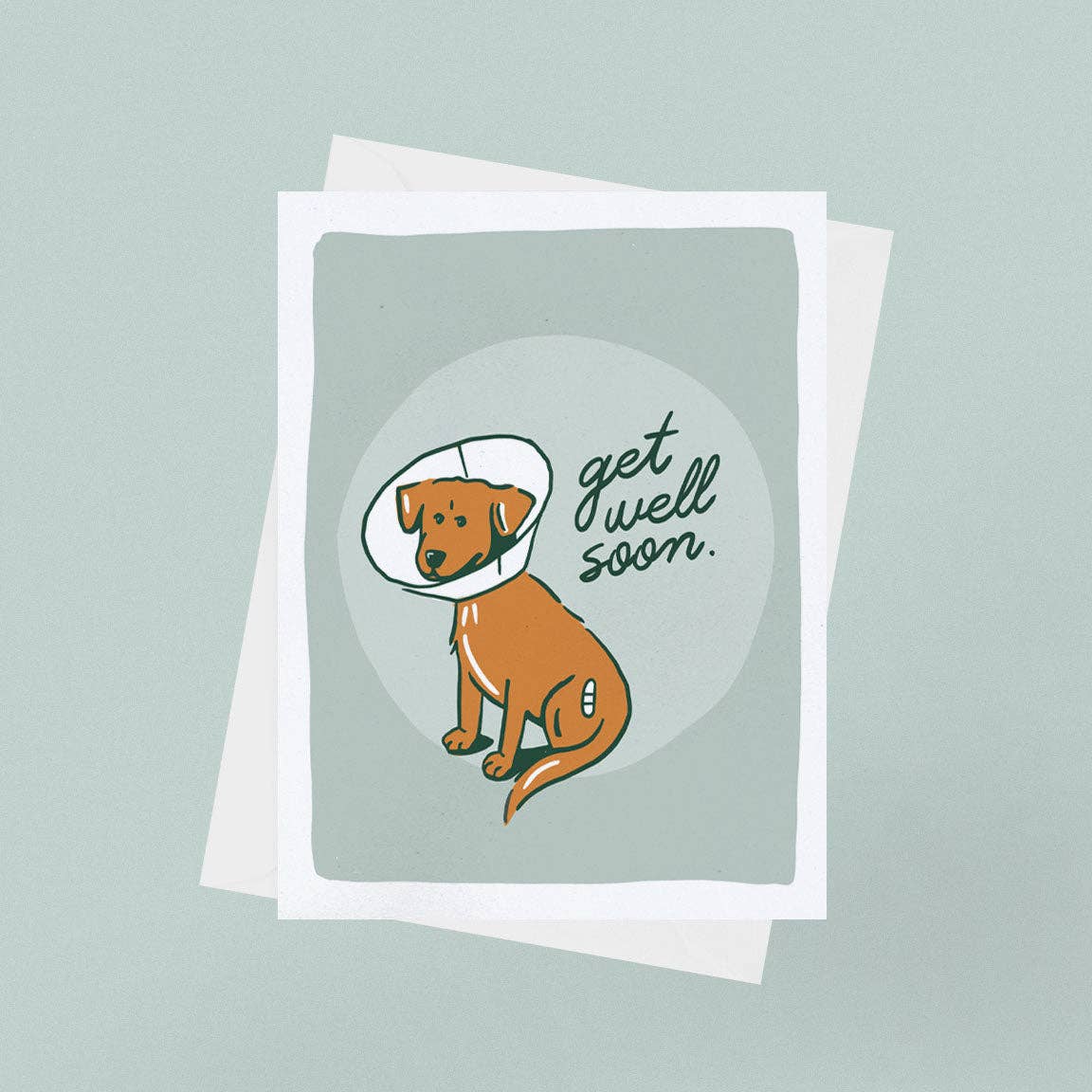 Put a smile on anyone's face with this adorable Get Well Soon card featuring a cute (but OH so sad) pup with the infamous cone of shame.