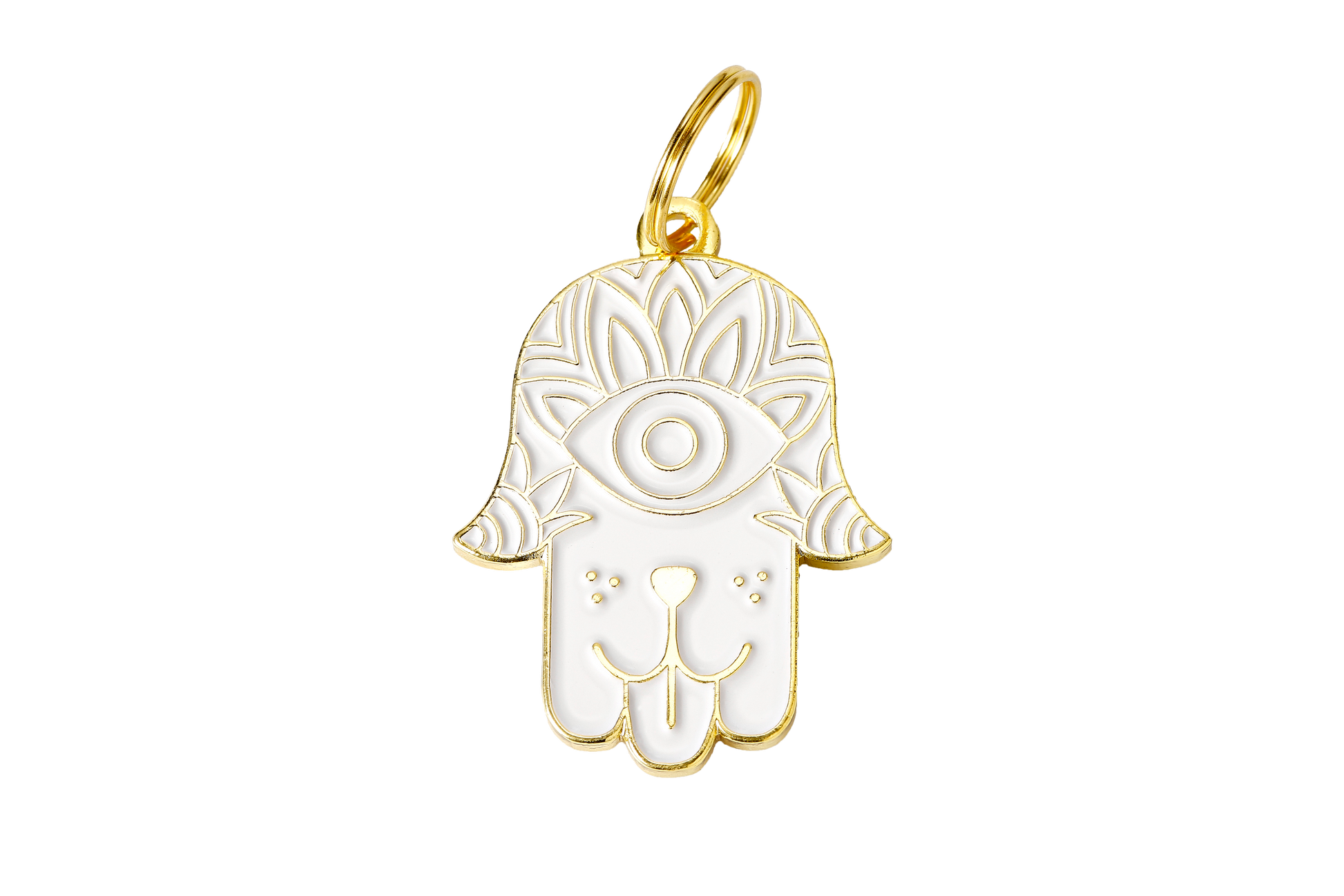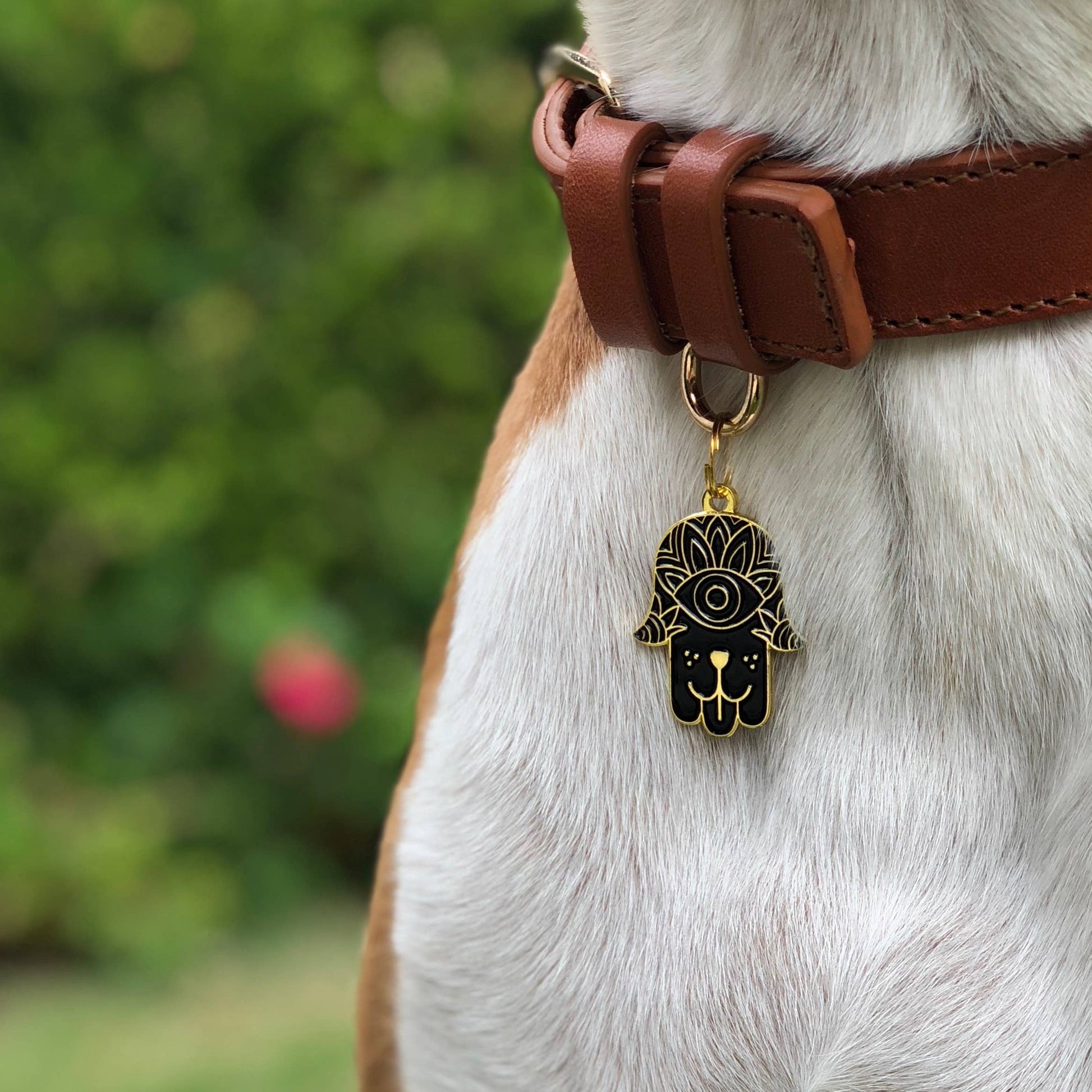 Protect your pooch from the evil eye with this dog-faced Hamsa.