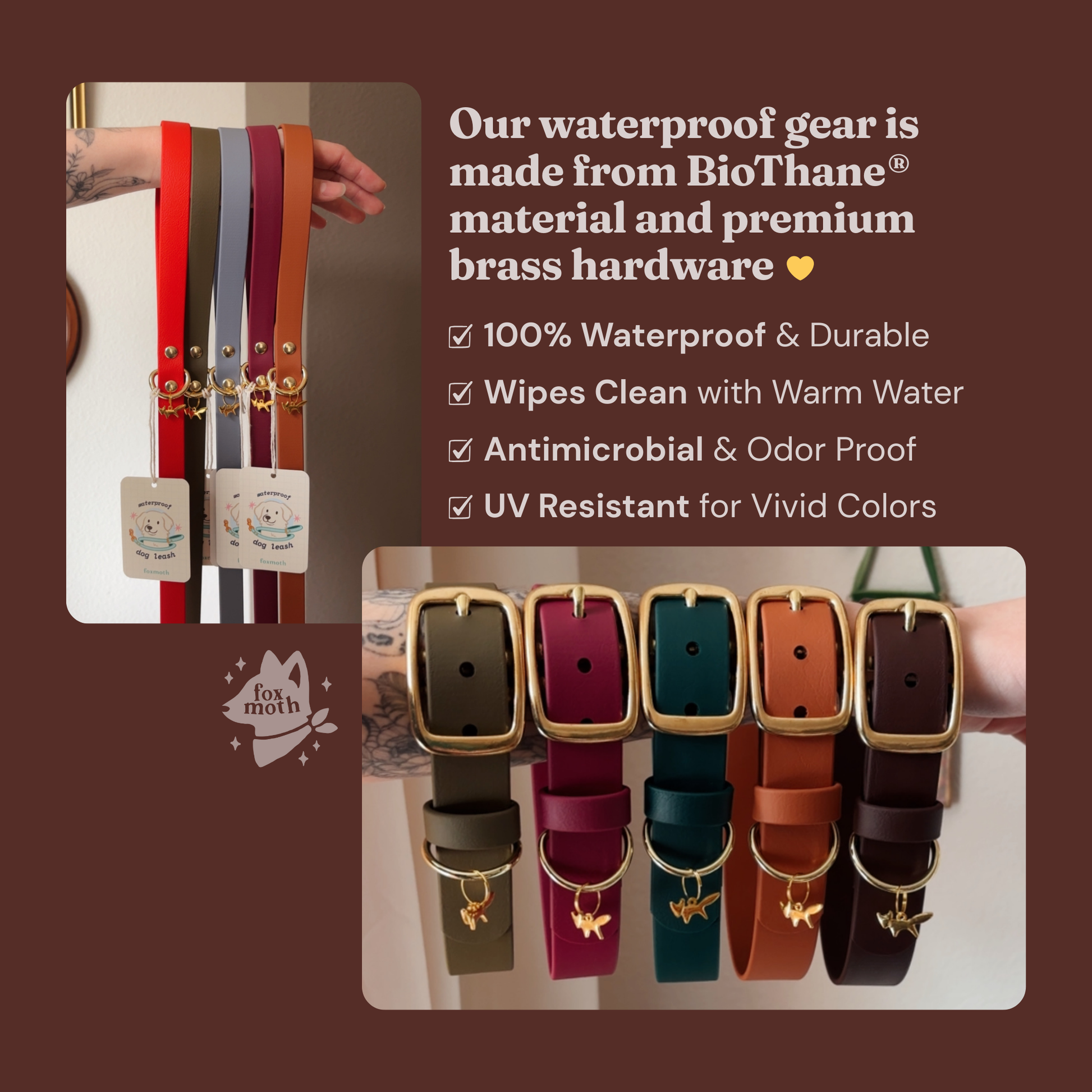 šļø Tough trails? No problem! At FoxMoth, we believe you should never have to sacrifice durability for style - that's why our waterproof line is handmade from Biothane material and finished with solid brass hardware š