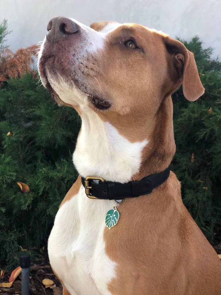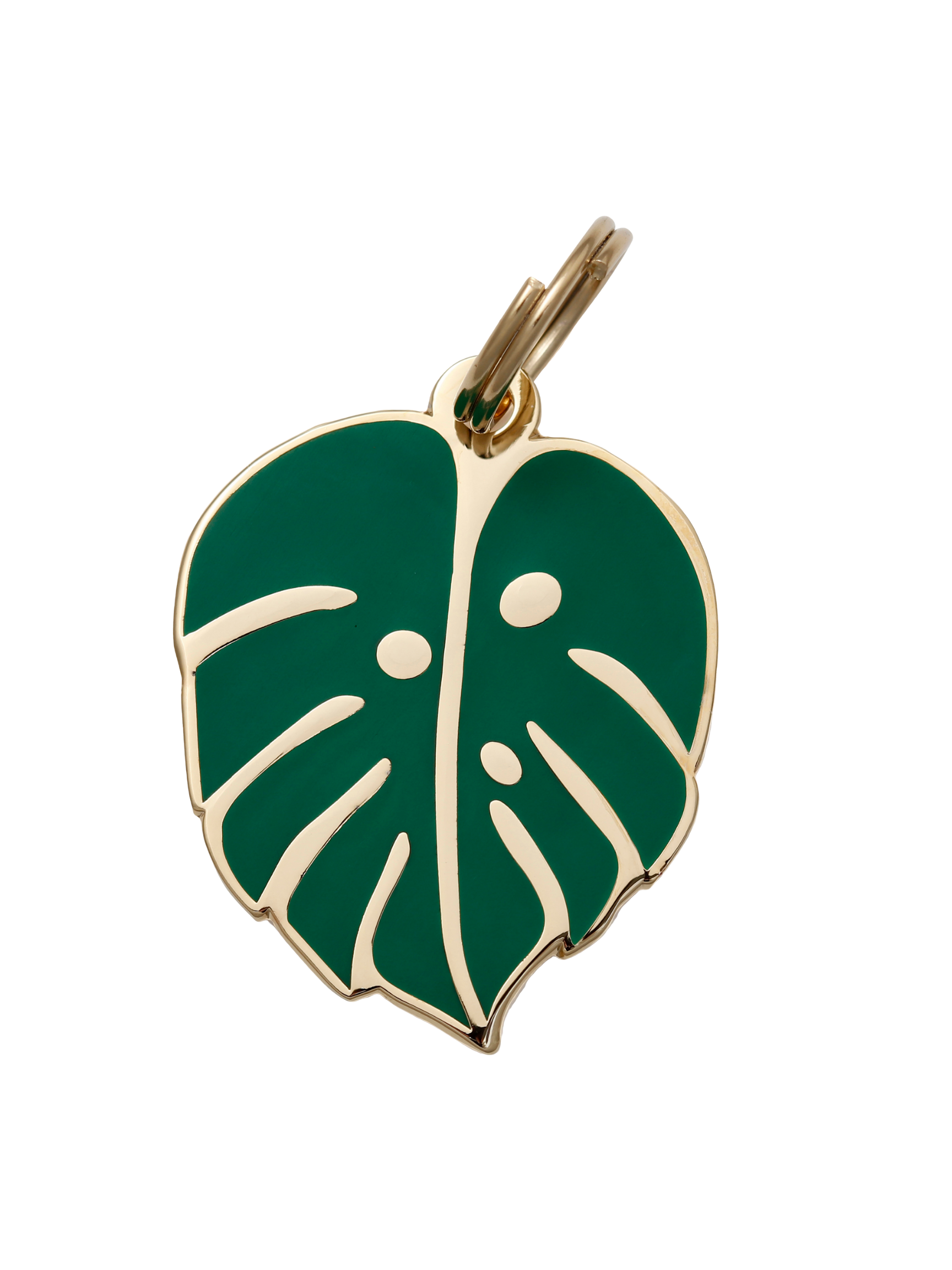 "When your dog only wears the trendiest and most posh accessories, adorn her in this ‘Monstera Leaf’ collar charm and pet ID tag. Whether it’s enjoying brunch at the Beverly Hills Hotel or ordering around a personal shopper around Bergdorfs, it’s important to have class. First class in your dog’s case. Pamper your little diva with the ‘Monstera Lead’ Pet ID Tag. Add your dog's name for a pet ID tag!