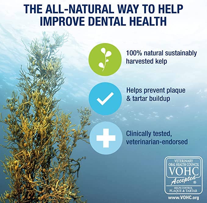 ProDen PlaqueOff® Powder is a 100% natural pet food supplement containing the natural and organic kelp ingredient A.N ProDen™ – shown in clinical trials to help reduce plaque and tartar and to help improve bad breath. The results are usually seen between 3 to 8 weeks, with continued use.