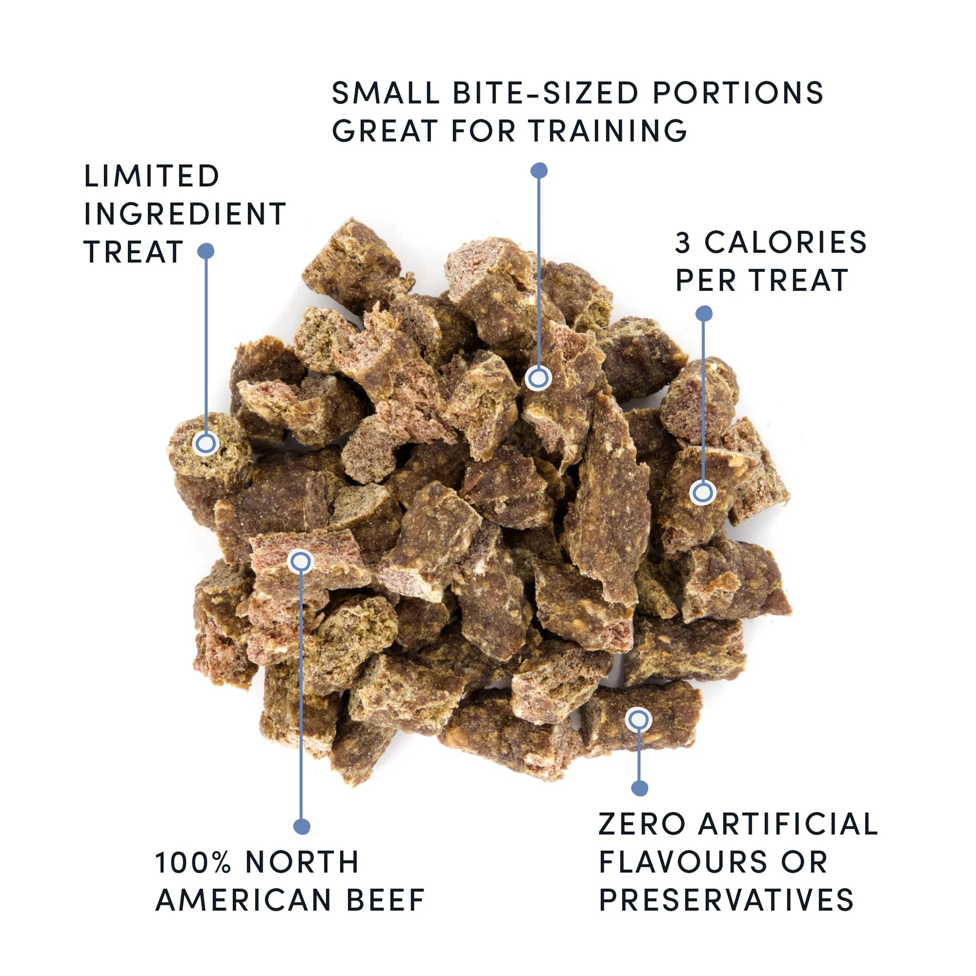 Each soft and chewy treat contains all natural ingredients starting with North American Beef making it the perfect high protein snack for dogs of all ages and sizes.