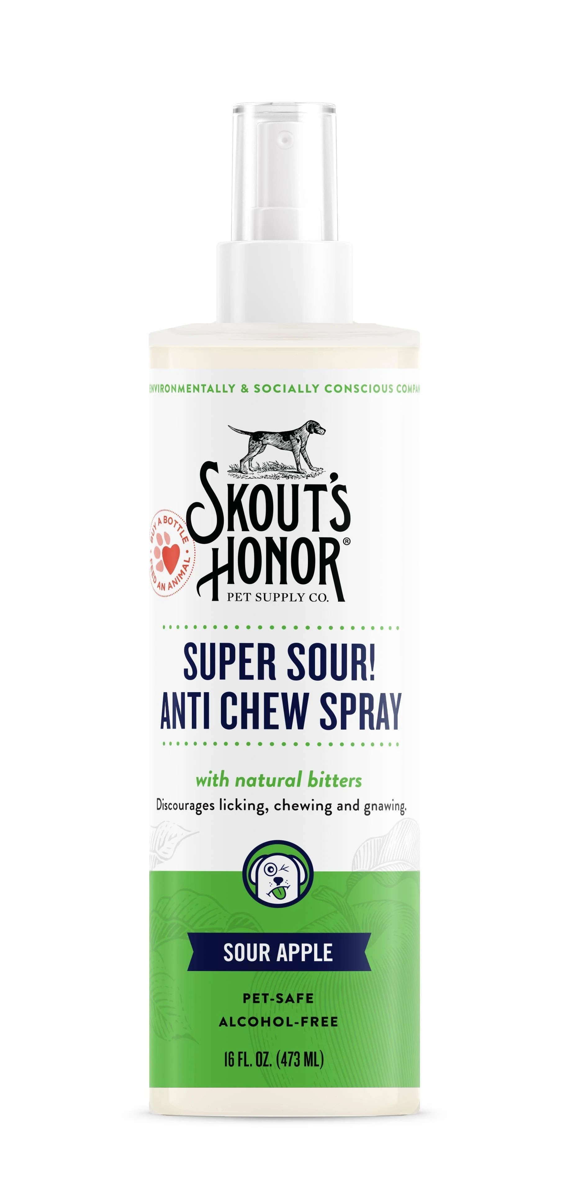 Help your furry buddy take a bite out of bad habits—instead of your home goods—with Skout's Honor Super Sour Anti Chew Spray! This anti-chew training spray is designed to discourage destructive chewing, biting and licking. Plus, it's paw-fect for dogs and cats alike.